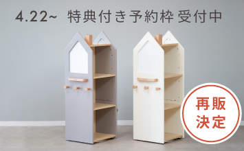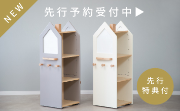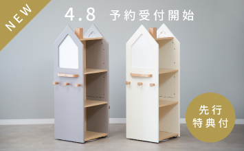 360度回転構造により省スペースでの使用が可能で、絵本やおもちゃ、通園グッズなどをすっきり収納可能。