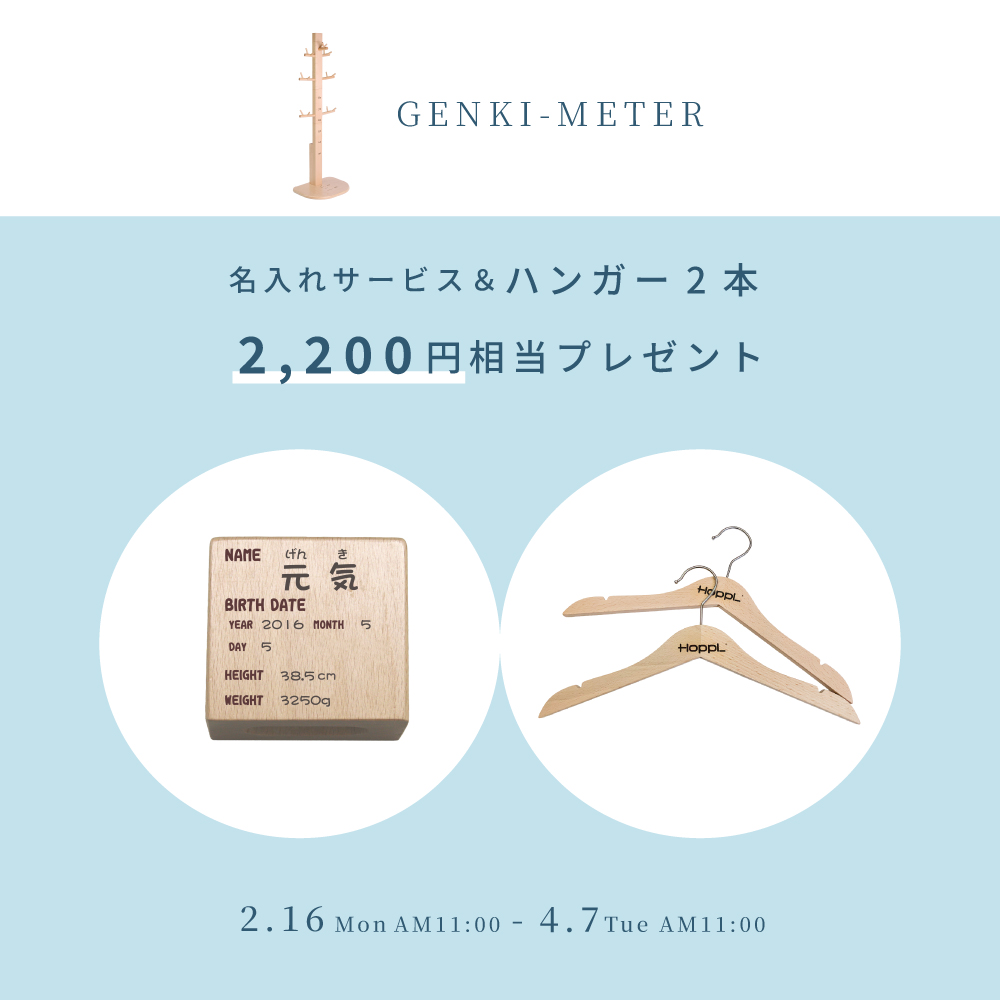 無垢のブナ材からつくられるゲンキメーターは、まるで本物の木のようにお子さまと一緒に成長する身長計。