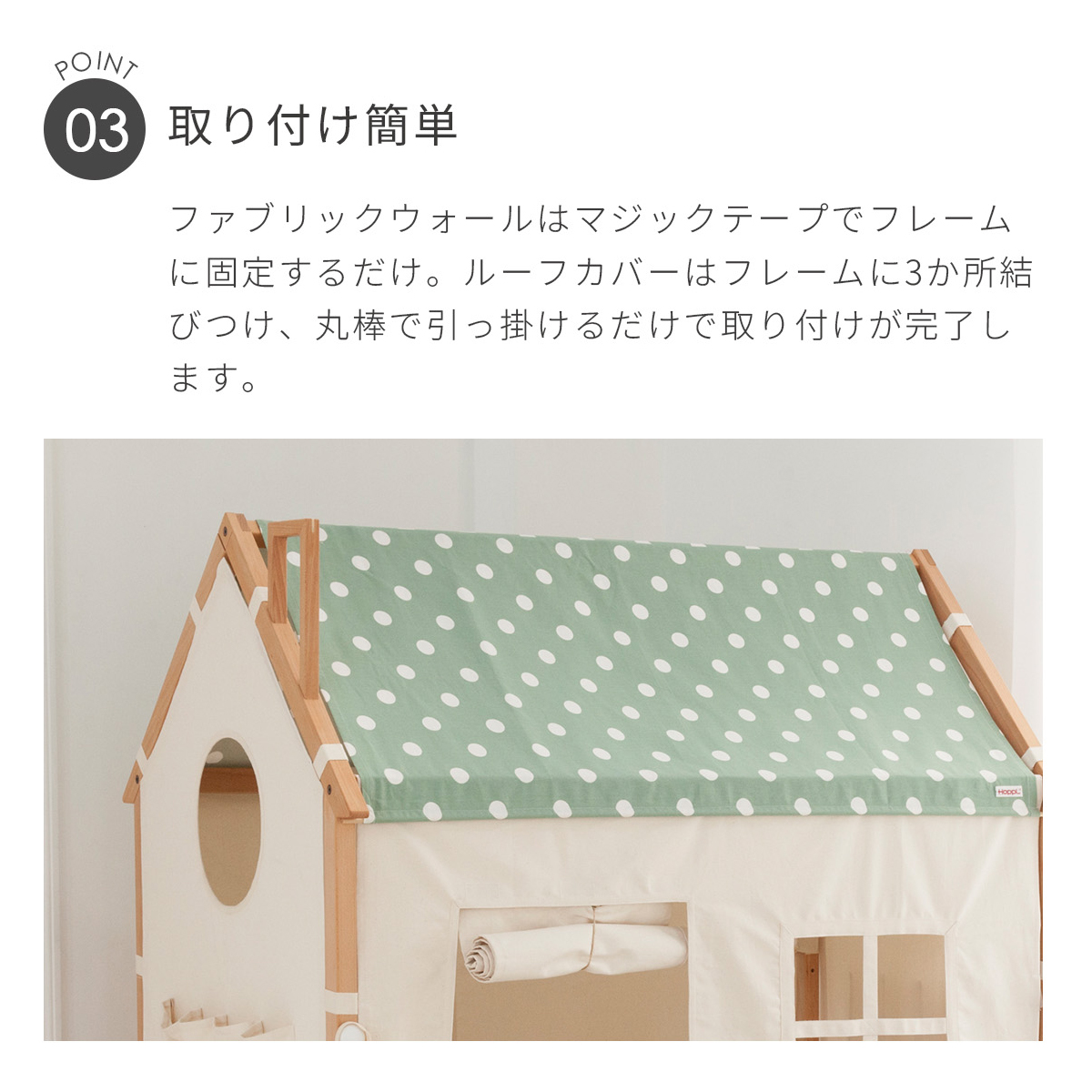 ホップルハウスに取り付けるファブリックウォールとルーフカバーのセットです。