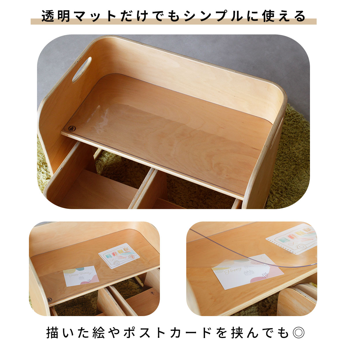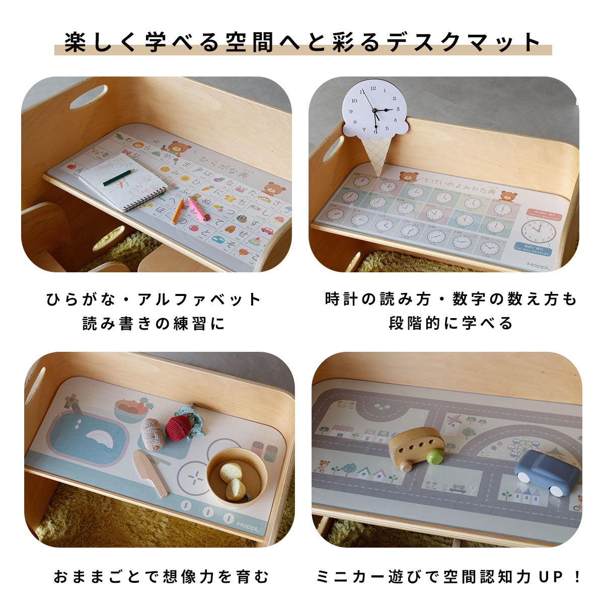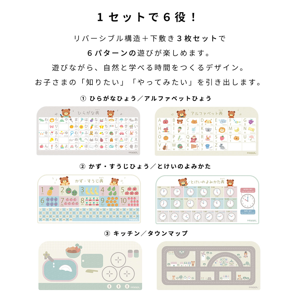ちょっとひどい到着初日に子供がマグをこぼしてしまい、使い物にならなくなりました。マットは水に強いですがひらがなシートなどはただの紙なので隙間から水が入り捨てる羽目になりましました。これが4-5千円は普通に無しですね。