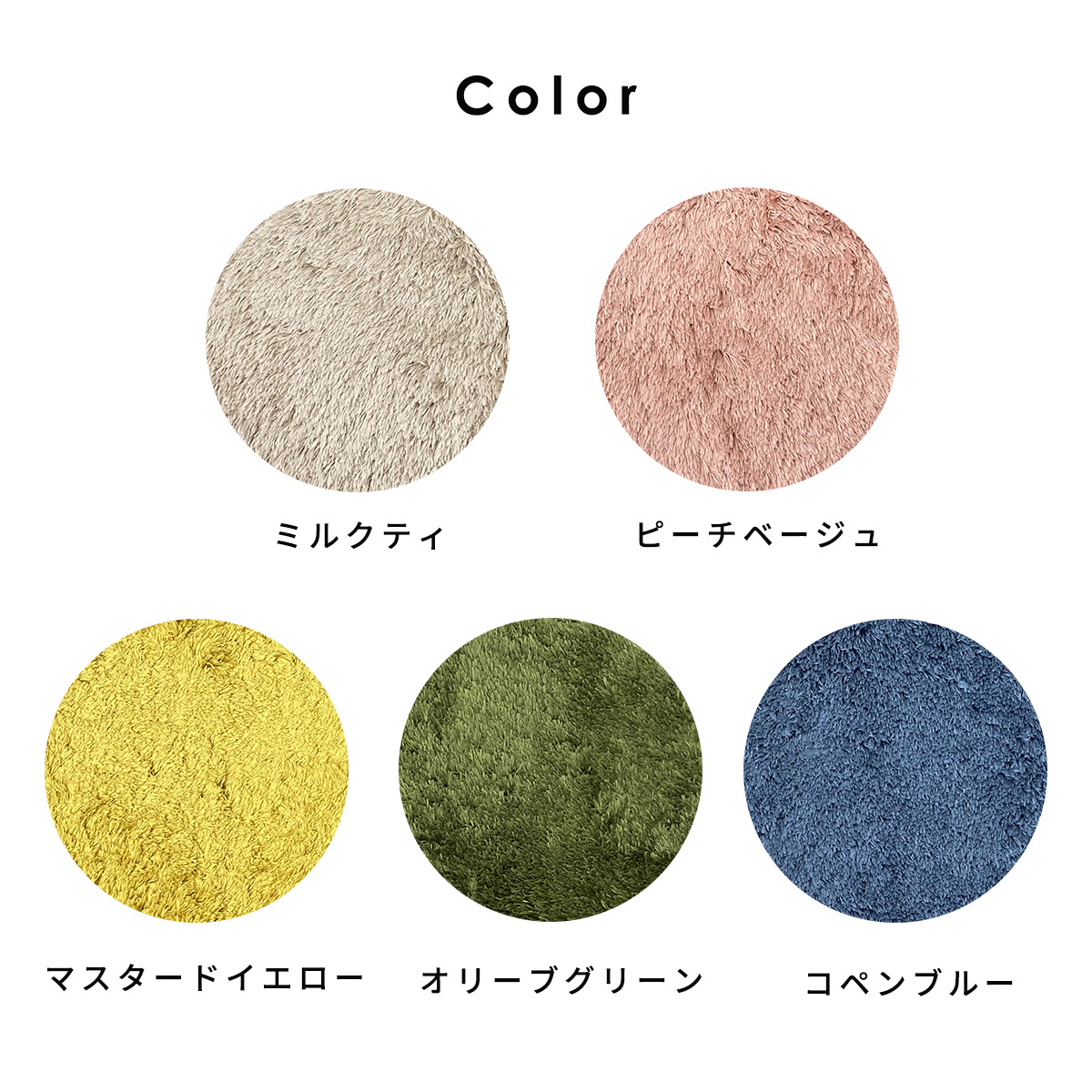 カラー:ミルクティ・コペンブルー・マスタードイエロー・オリーブ・ピーチベージュ