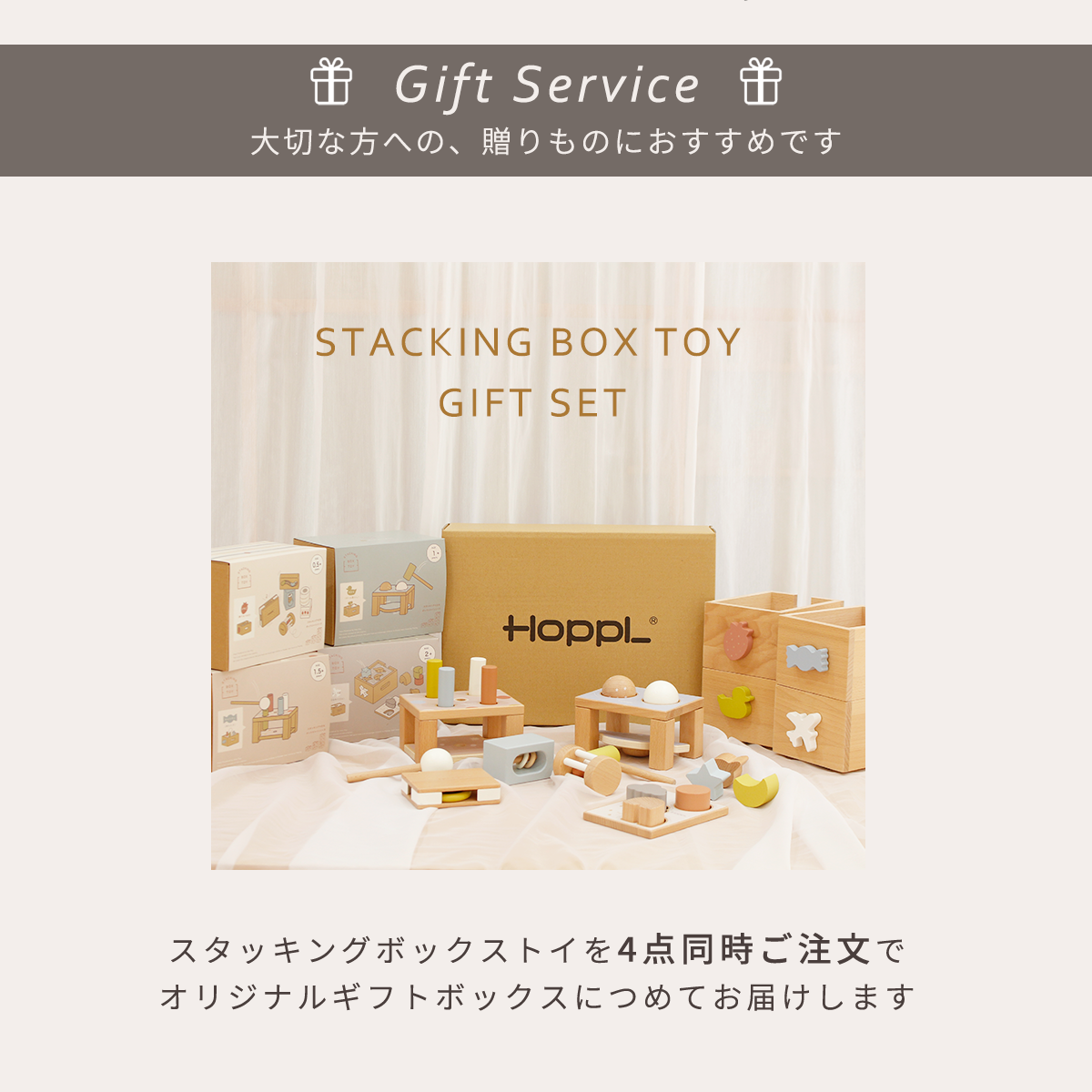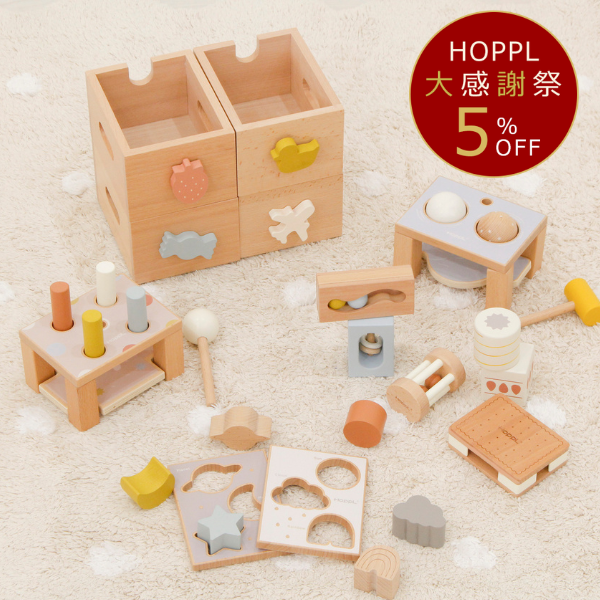 年齢別に遊べる4種のおもちゃは、お子さまの五感を刺激し発達を促す知育玩具です。