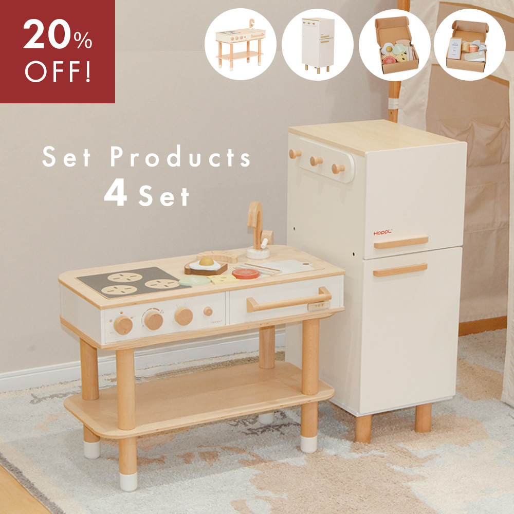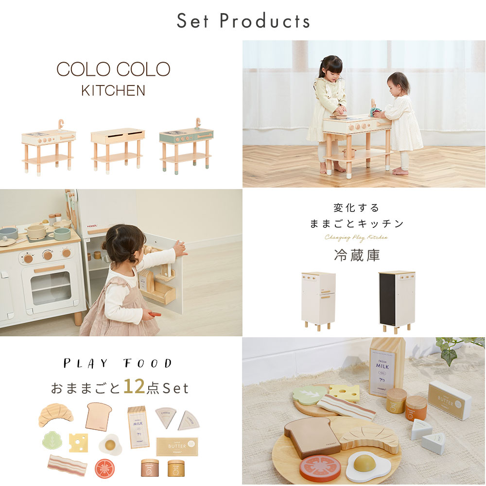 さらに、HOPPLの人気No.1 コロコロチェア&デスクとのセット使用も可能で、万能なおままごとキッチンです。