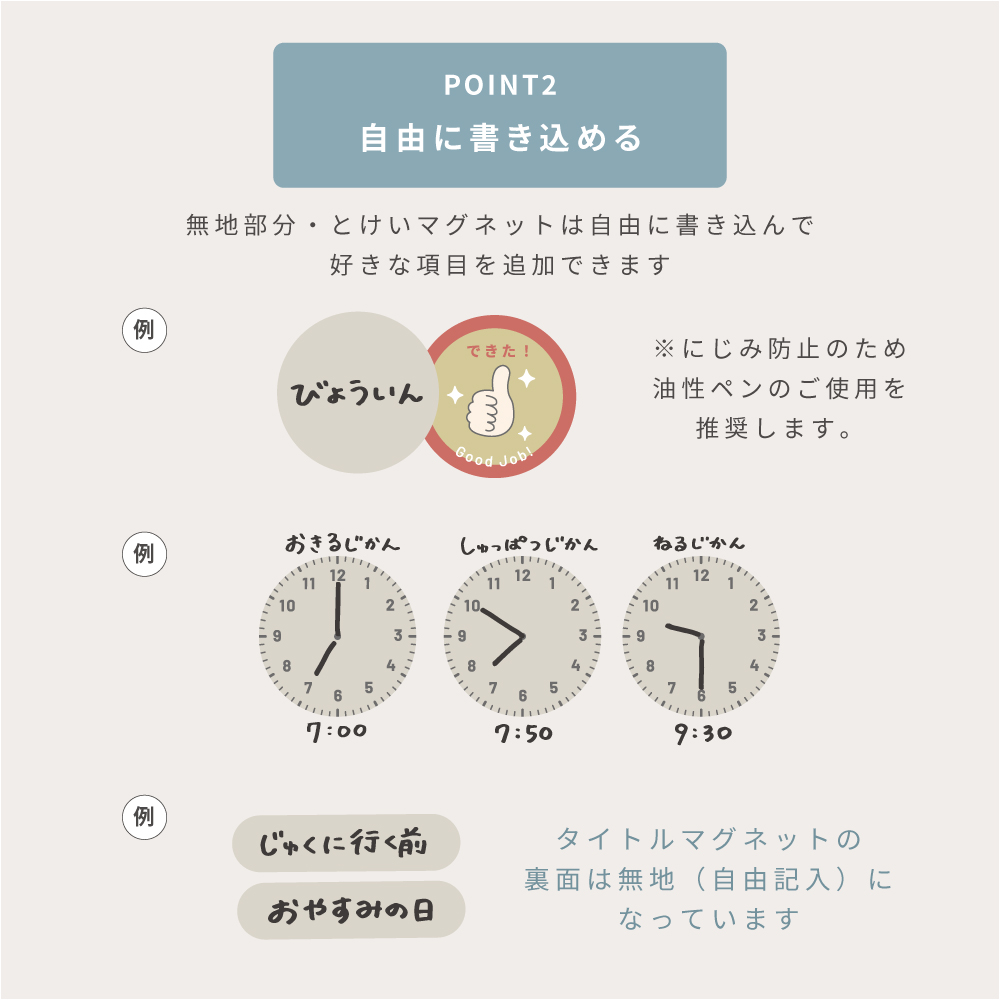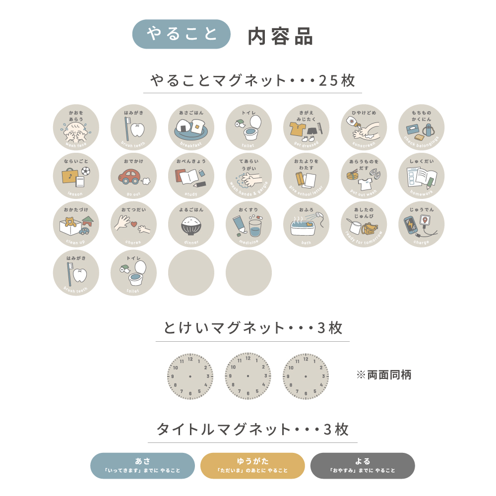 毎日の「やること」や「もちもの」を見える化し、子どもの“自分でできる力”を育てるマグネットシリーズです。